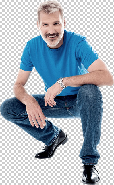Handsome man crouching down and smiling